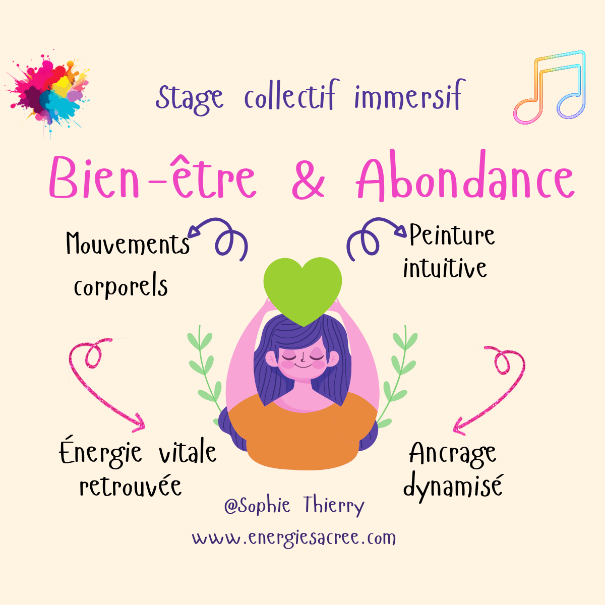 Retrouvez également les évènements collectifs : ateliers art-thérapie, cercles de femmes, stages immersifs.