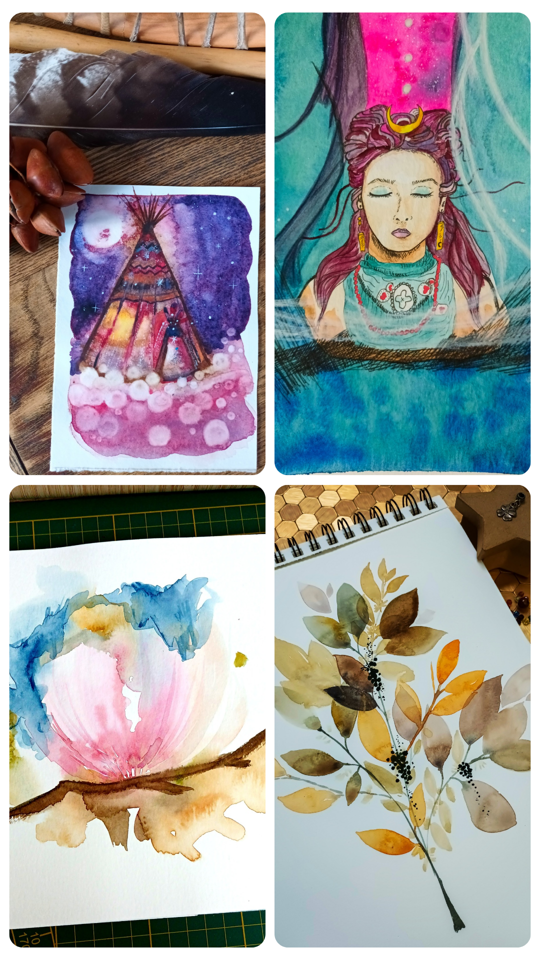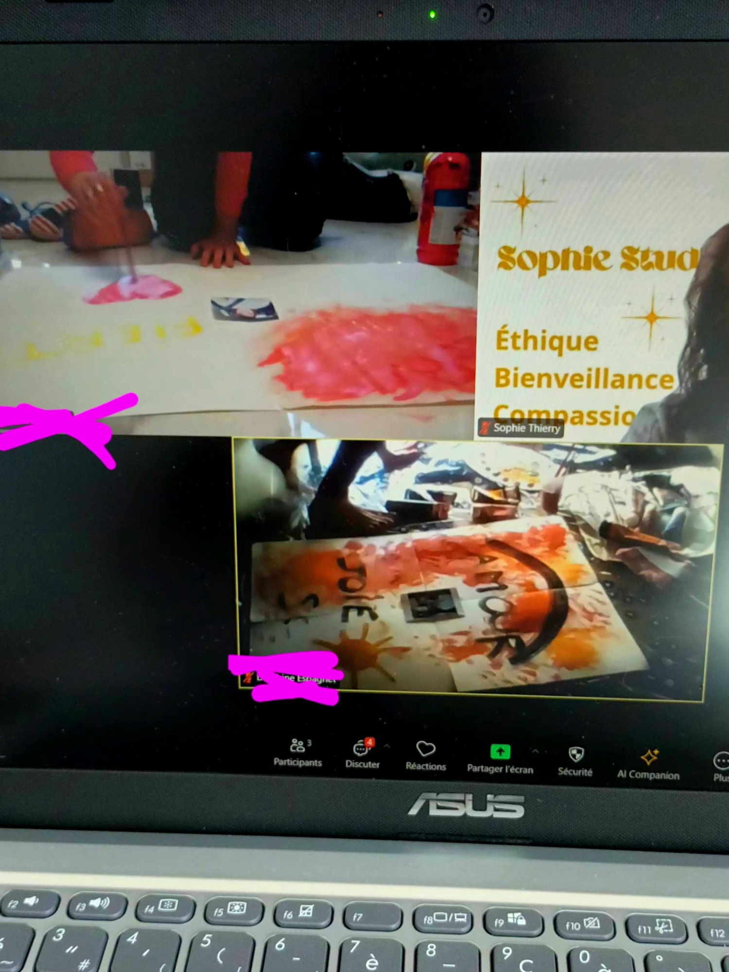 Galerie photos des ateliers collectif en art-thérapie en présentiel et en ligne.